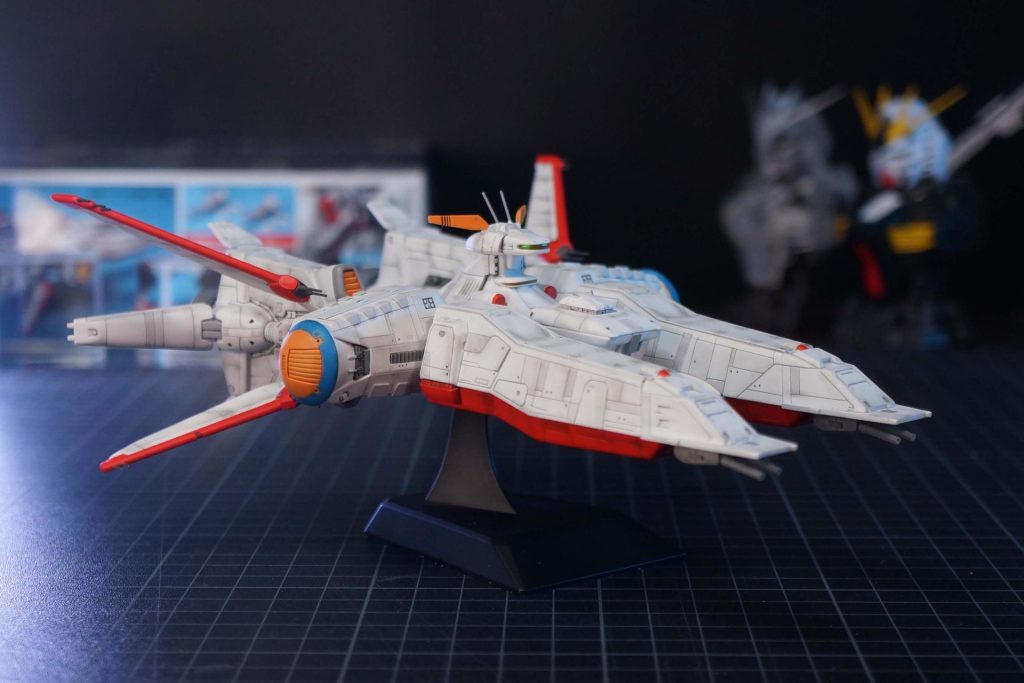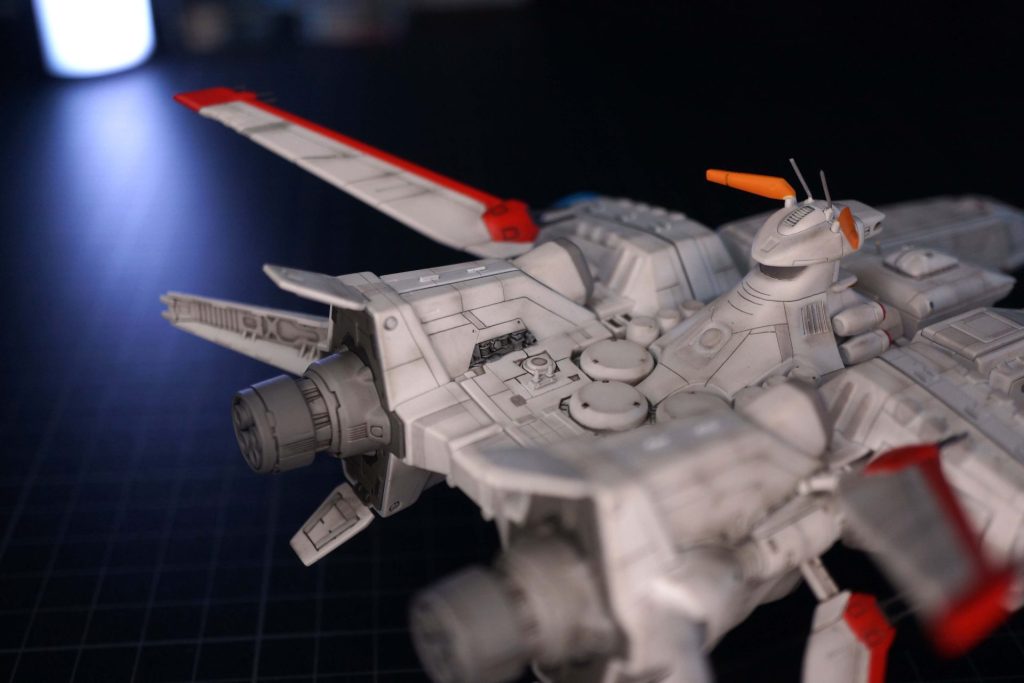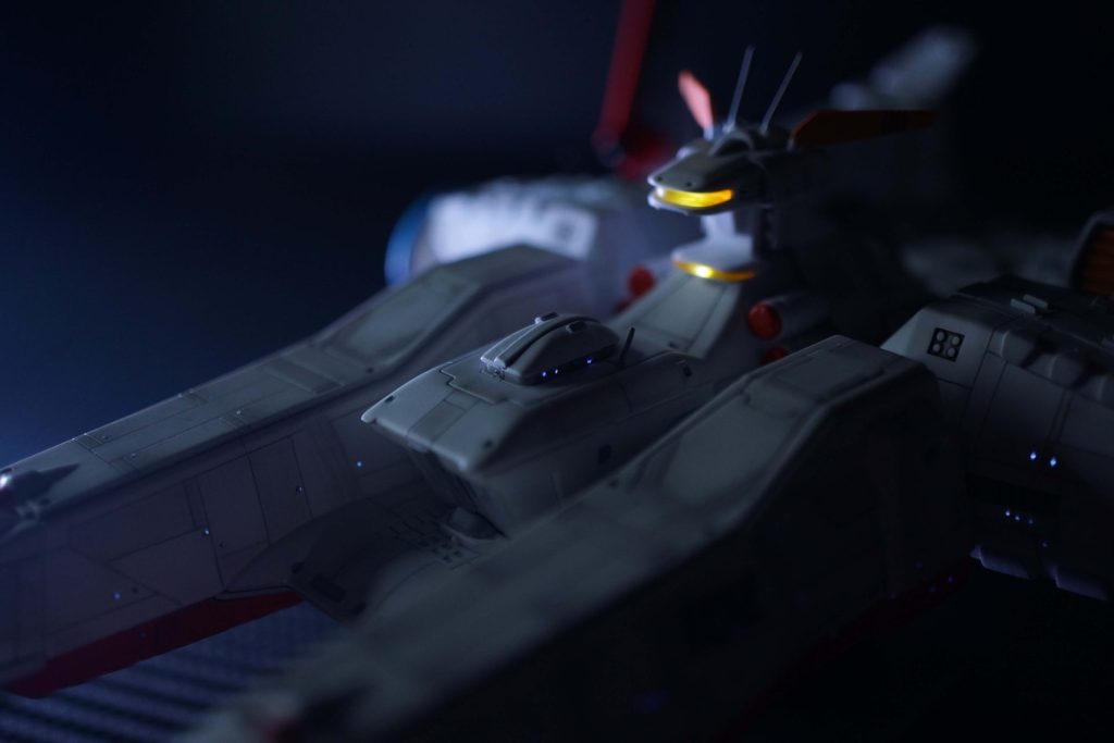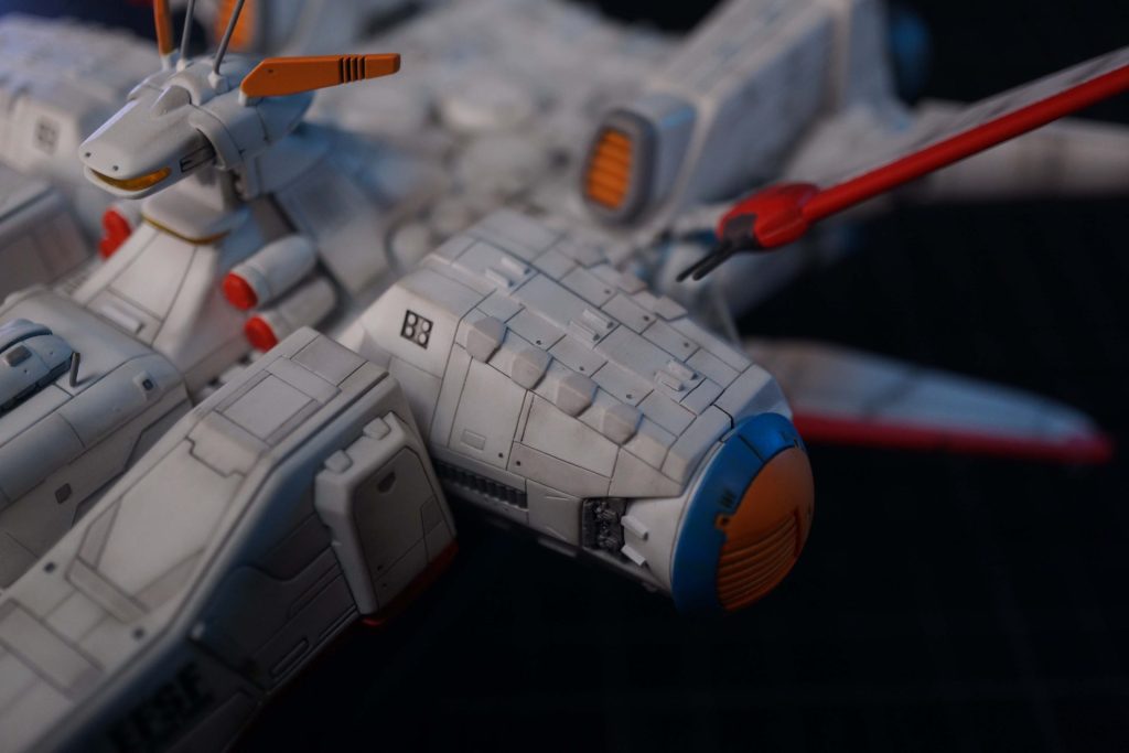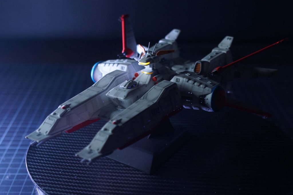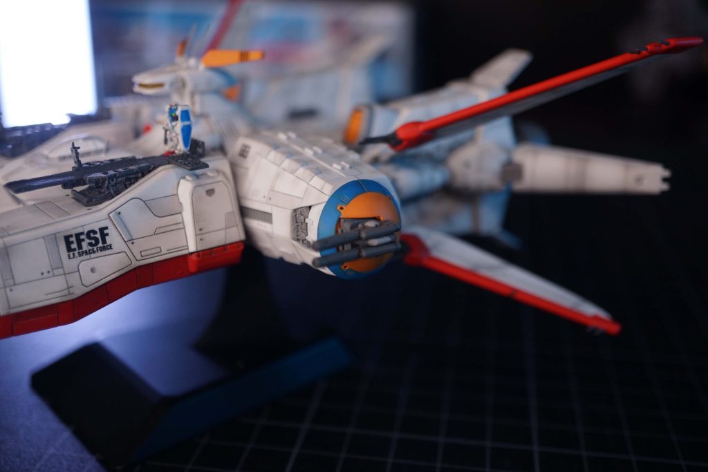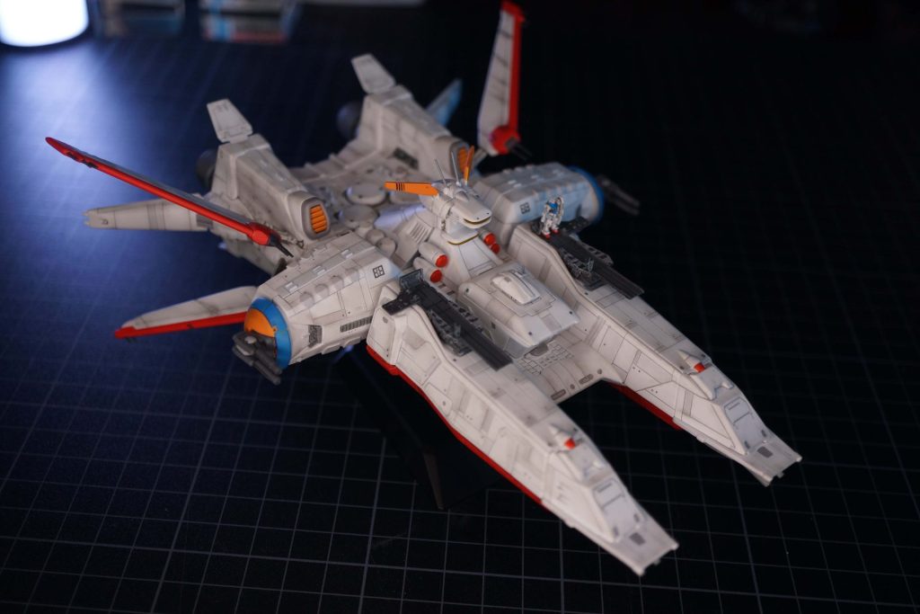 とにかくいつも作っているモビルスーツではなく戦艦なので、その巨大感を表現するにはどうしたらいいのかをもう少し詰めてから制作すべきだったかなと・・。