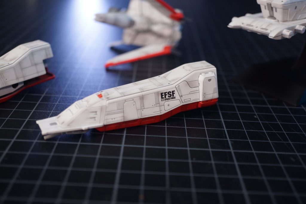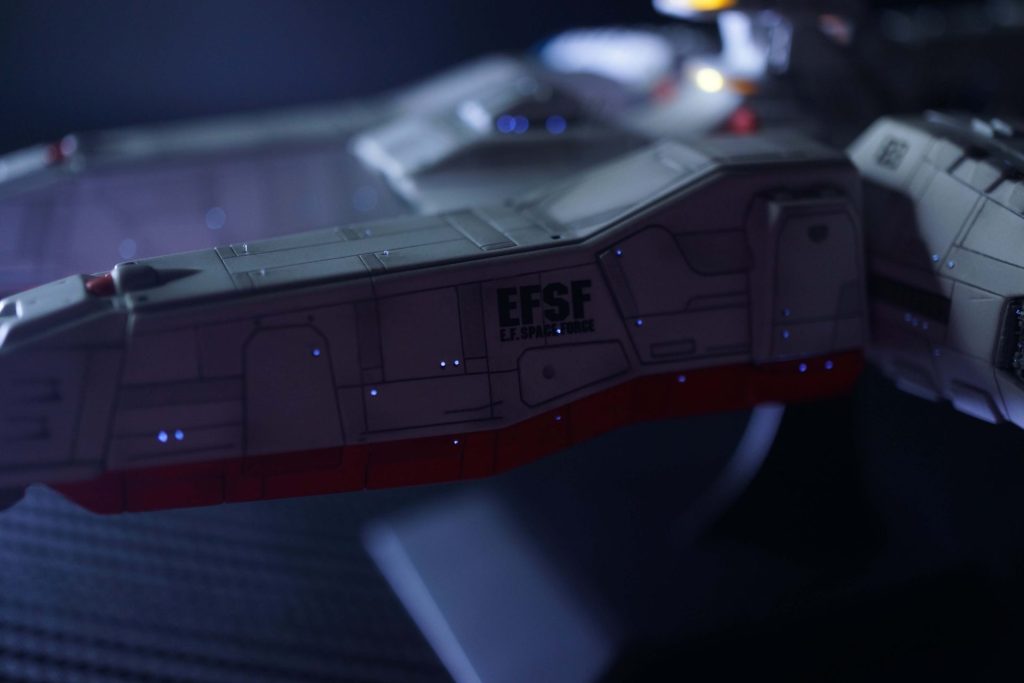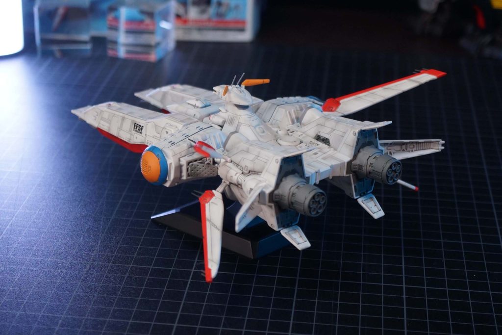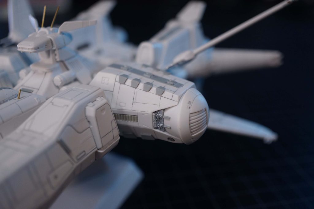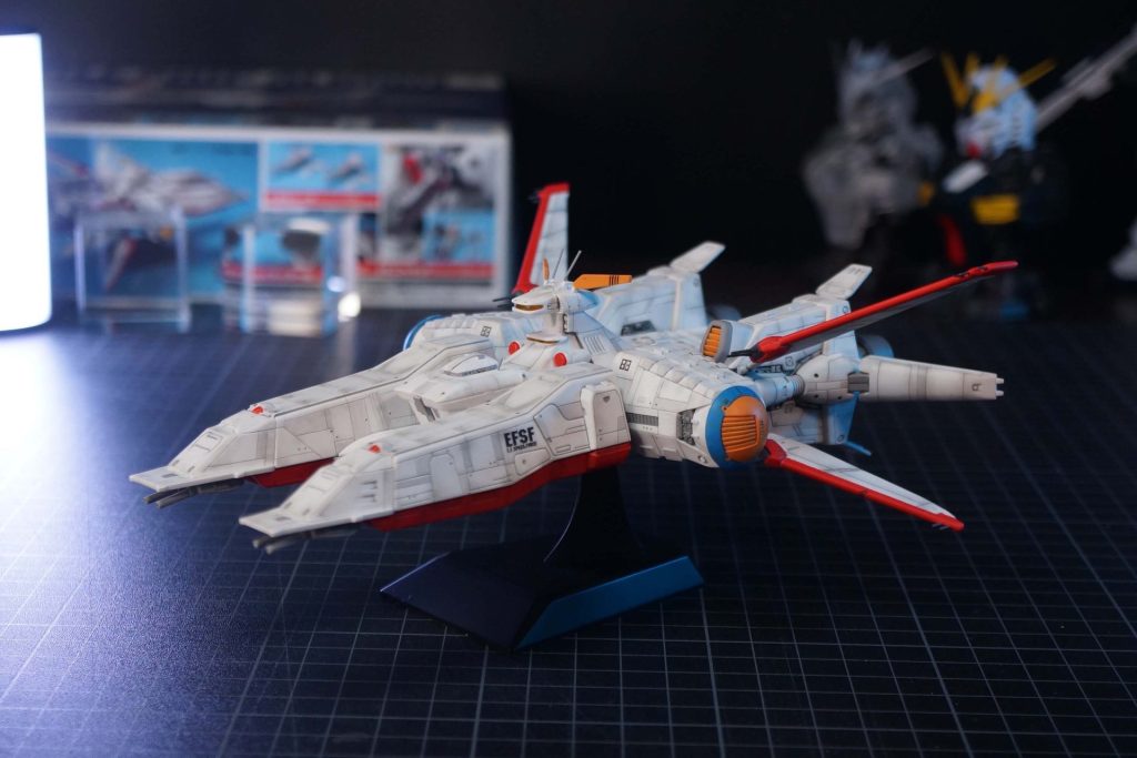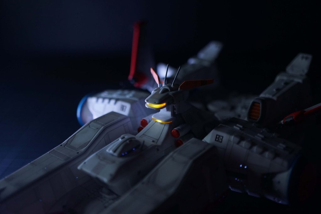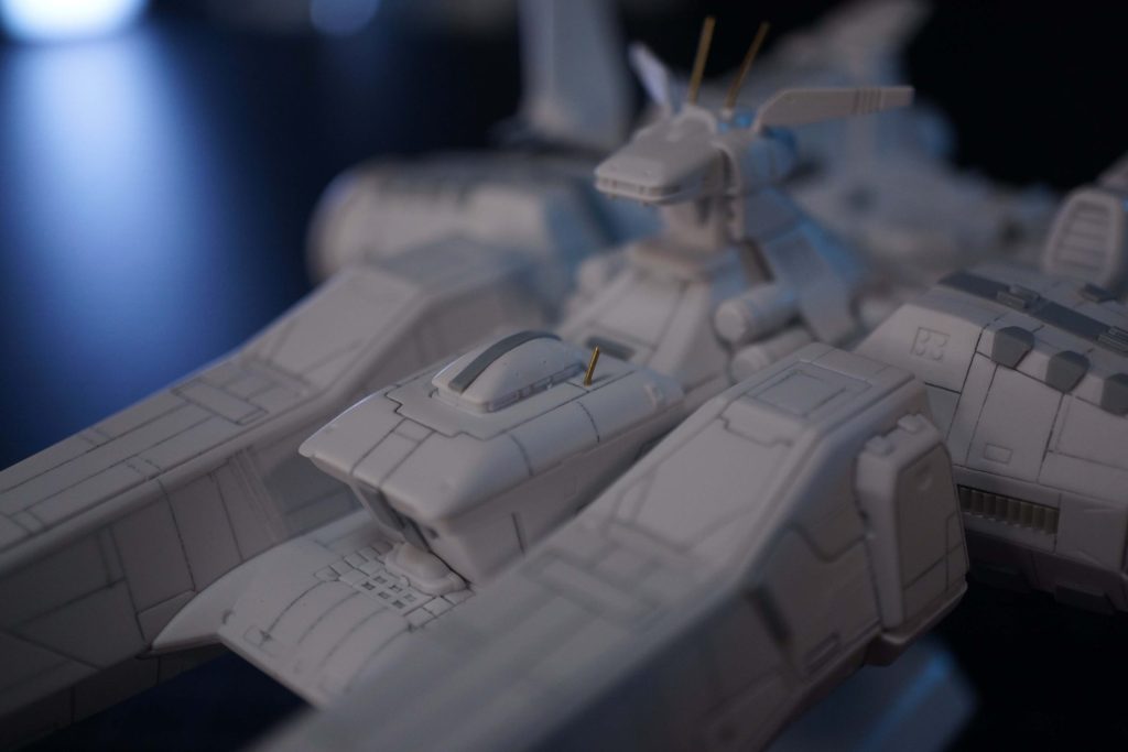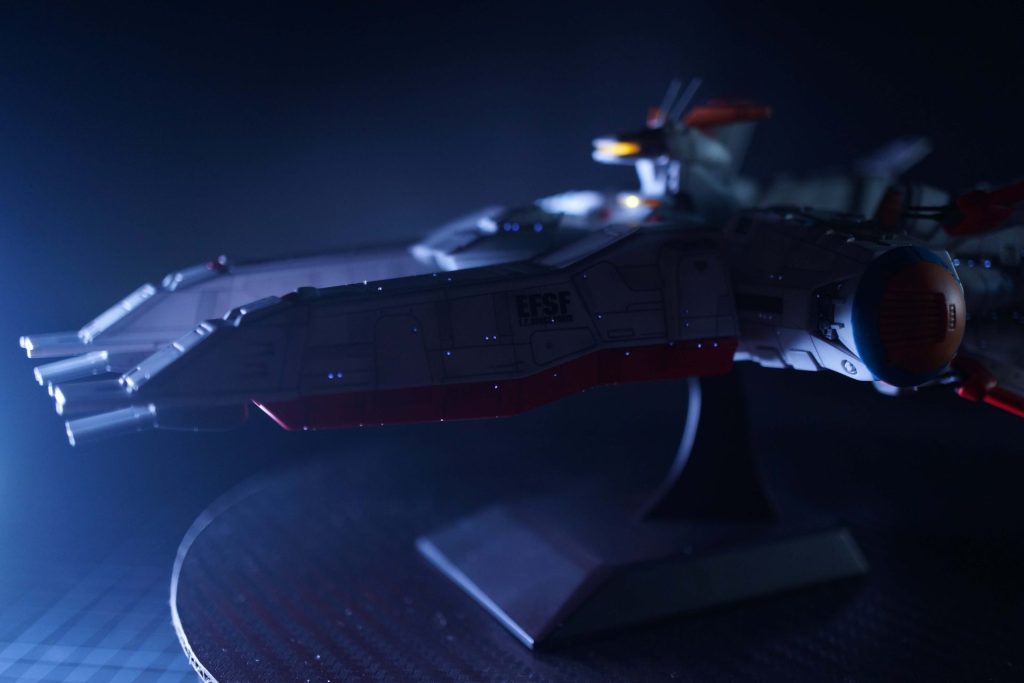 とにかくいつも作っているモビルスーツではなく戦艦なので、その巨大感を表現するにはどうしたらいいのかをもう少し詰めてから制作すべきだったかなと・・。