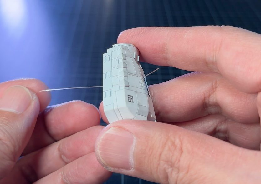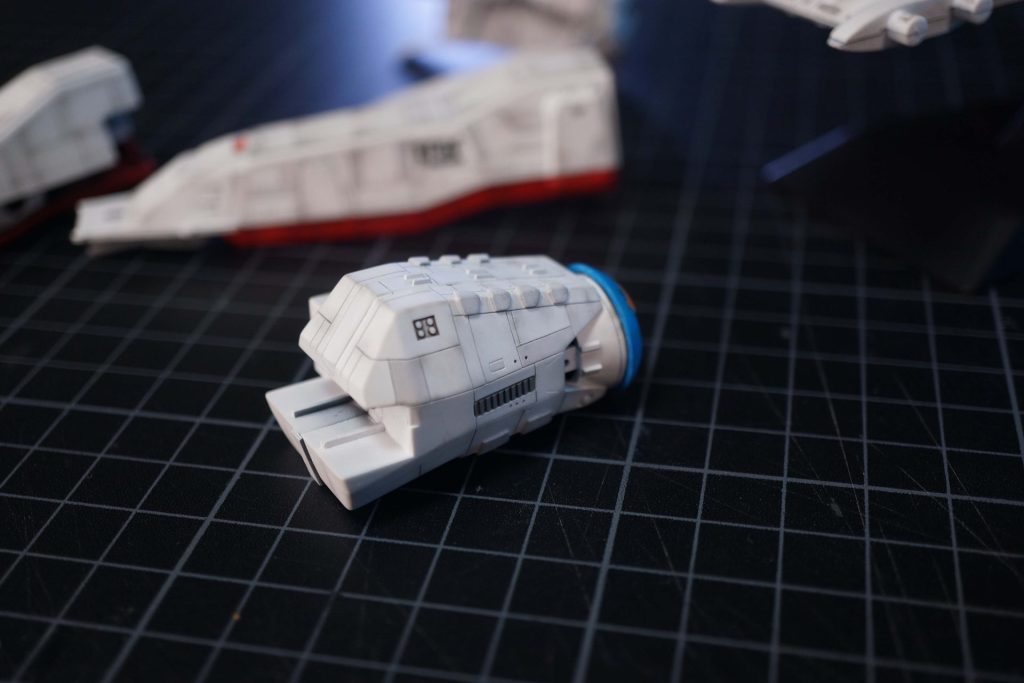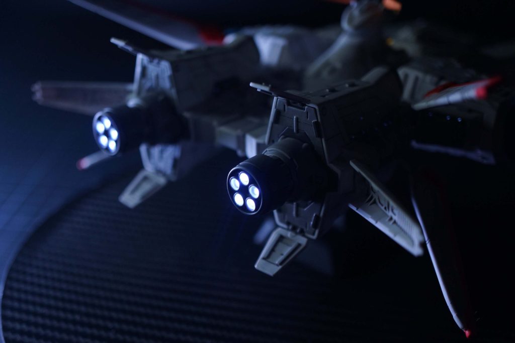 最後に0.25mmの光ファイバーを使って、電飾しました。スターデストロイヤーのような感じにしたかったのですが、そもそもあの光って何?窓?なんかわからないけど、それっぽくしたくてやってみたのですが、微妙っちゃ微妙ですね〜。