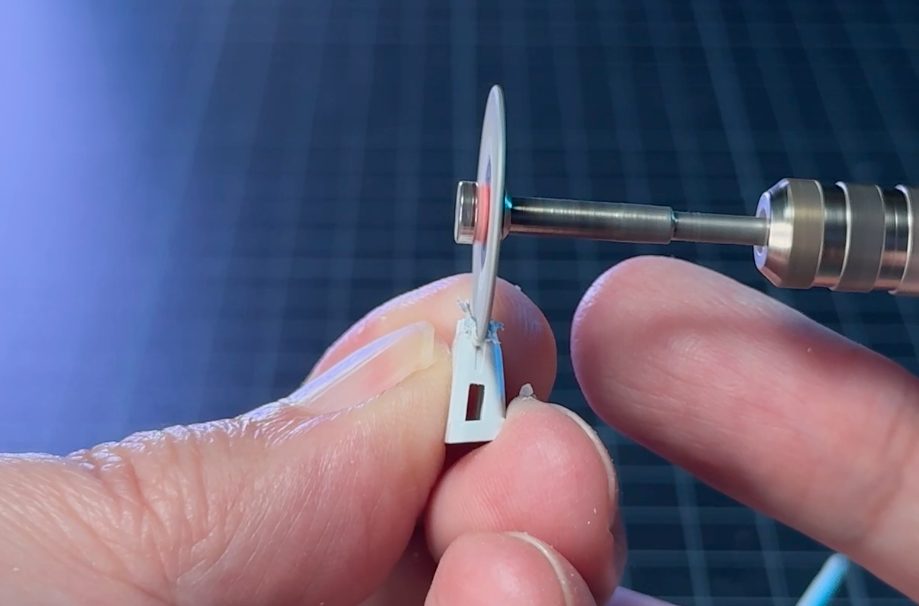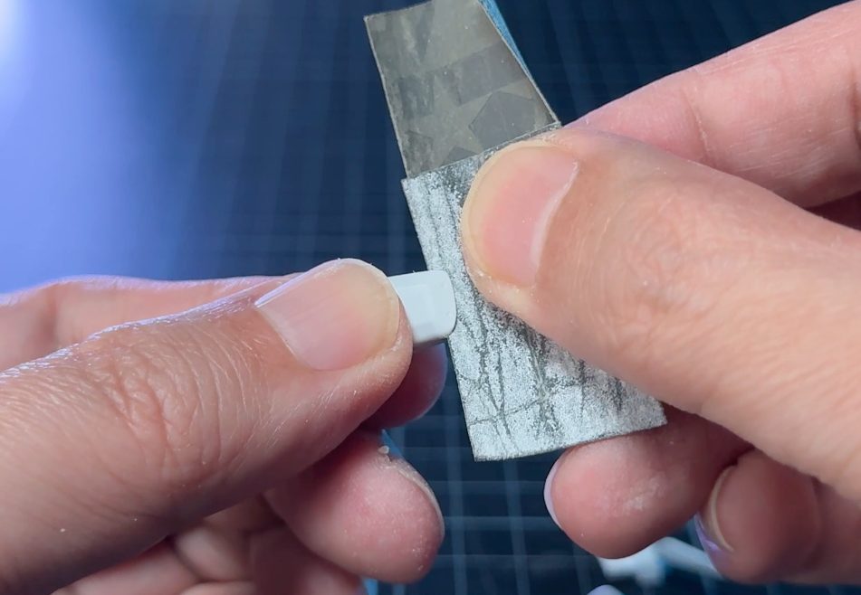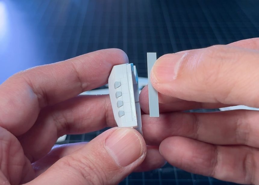 合わせ目が見えないように、プラ板で加工します。すこし削って、