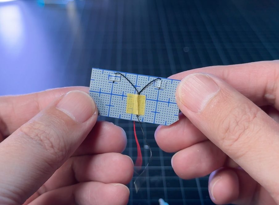 本体の電池に接続したチップledを、それぞれのプラパイプに差し込みながら各パーツをはめ込んでいき、完成!!