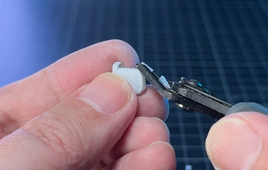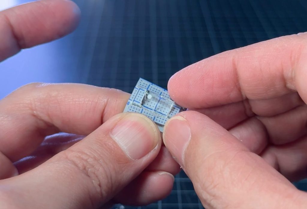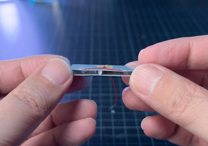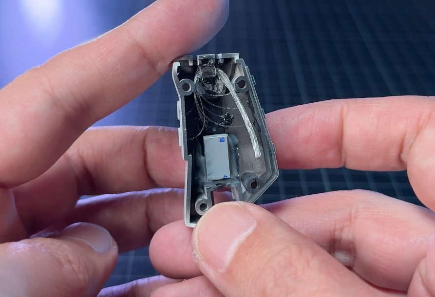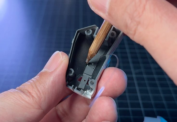 リチウム電池CR2025が2つ入るように、0.3mmプラ板と2mm角棒で電池用ホルダーを自作。
