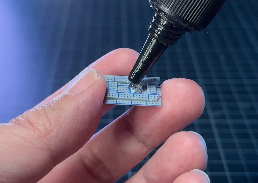 サブブリッジを点灯させるために、慎重に穴を開けます。一発勝負なので、かなり怖かった・・・(しかも若干ずれました・・・)