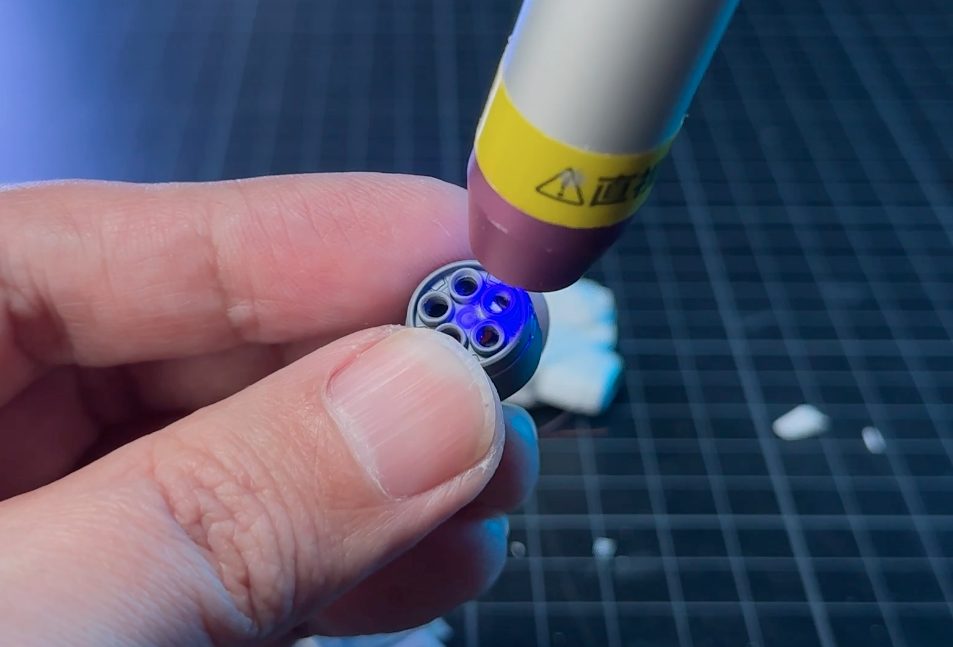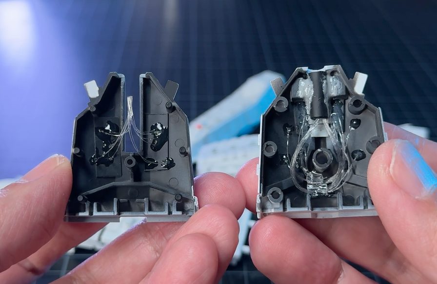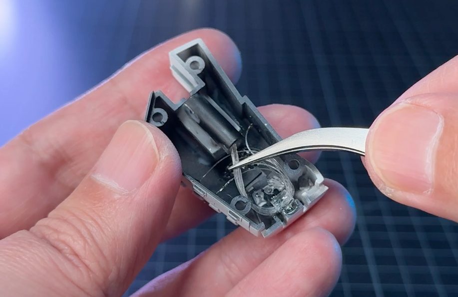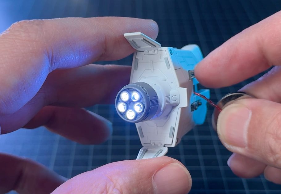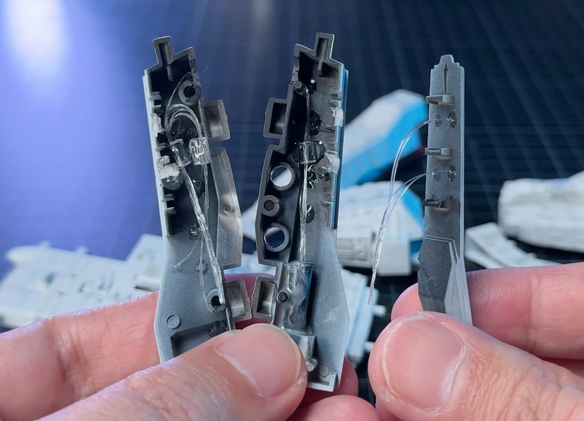 ここは、ストレスないように光ファイバーの長さを微妙に調整しながら、パーツを合わせました。結構大変・・・。(光ファイバーを雑に扱うと、取れちゃったりするので、何回かやり直ししています。)