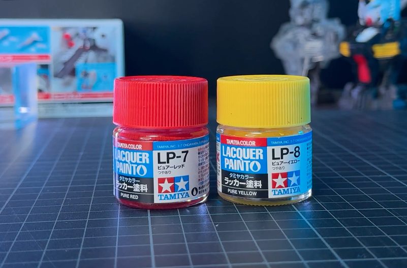 レッド部およびイエロー部は、それぞれタミヤカラー ラッカー塗料ピュアーレッド(LP-7)とピュアーイエロー(LP-8)を調色して、少しイエローの入ったレッドとオレンジがかったイエローに。
