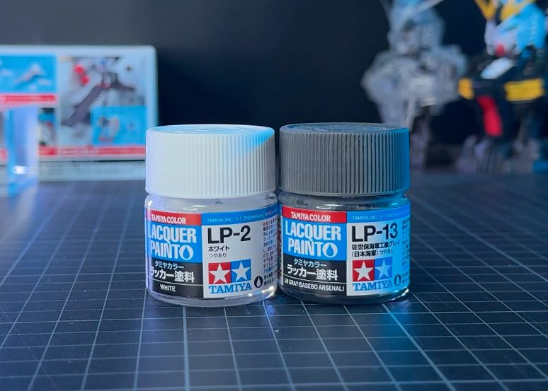 グレー部は、タミヤカラー ラッカー塗料 佐世保海軍工廠グレイ(LP-13)。スミ入れには、タミヤ スミ入れ塗料(グレイ)を使用。