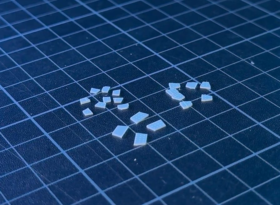 かなり細かい作業・・・。多少ずれたり形が違ったりしますが、お構いなしにはっつけていきます。遠目に見るとそれっぽくなったかなと。