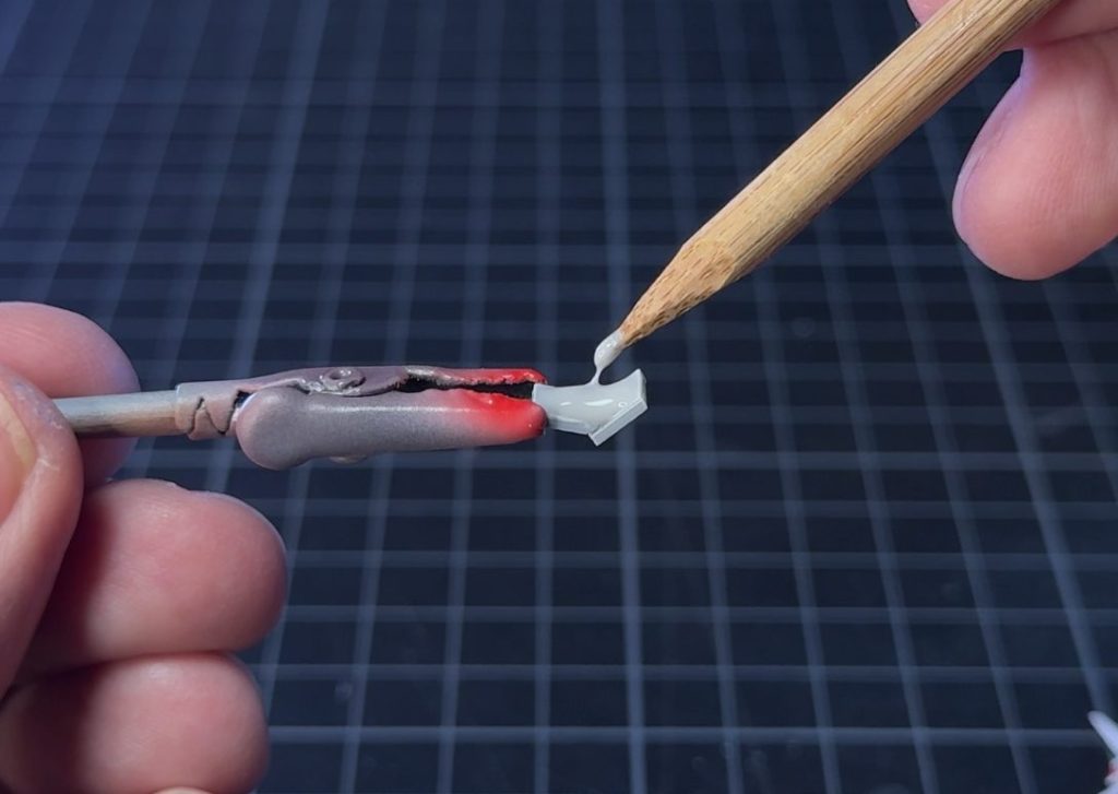 筆塗りでは、グレーをタミヤカラー エナメル塗料スカイグレイ(X-19)とホワイト(X-2)を調色。