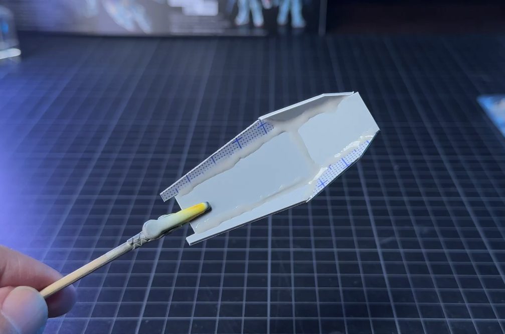 いつものように、ざっくりとパネルラインデザインを考え、「タミヤ 曲線用マスキングテープ 2mm」をガイドとして使用しました。
