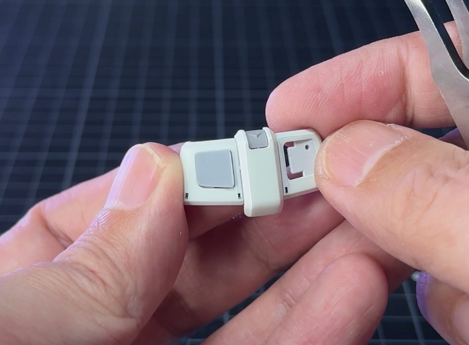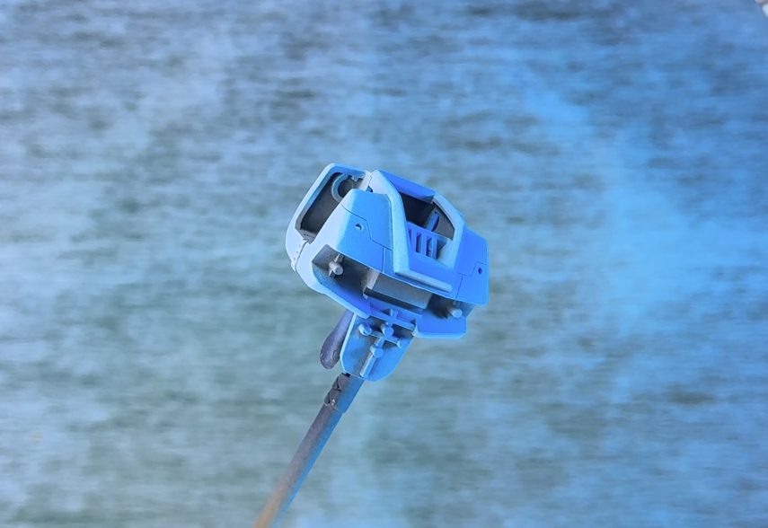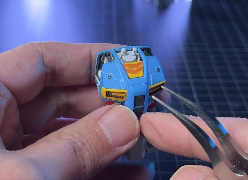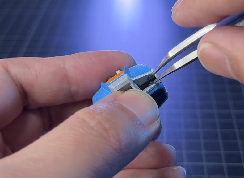 ここでも今回初めて購入した、「グリーンマックス Nゲージ 動力台車枠・床下機器セット A-27(8511)」を使用。案外鉄道模型のこういったパーツは、ガンプラのディテールアップに使えるんじゃないでしょうかね。