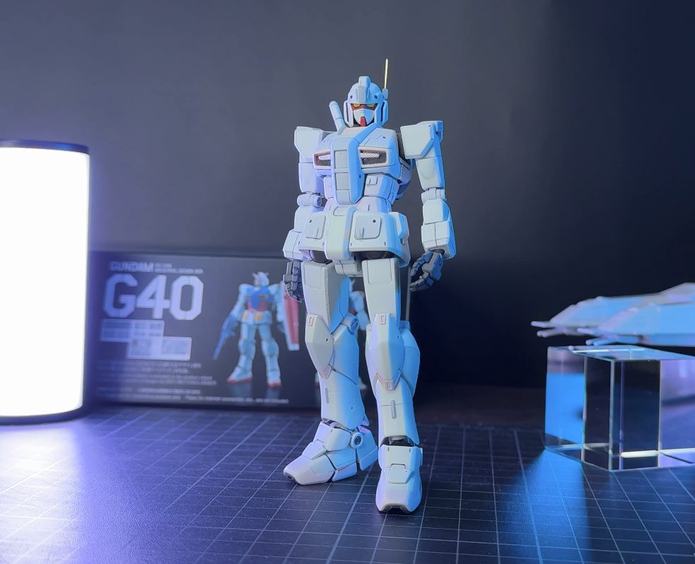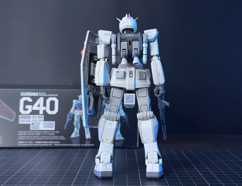 ガンダムG40は、2019年に「機動戦士ガンダム40周年記念プロジェクト」の一環として開発・発売されたHGモデル。アニメの「ロボット」ではなく、「工業製品」としてのガンダムを追求したデザインになっています。