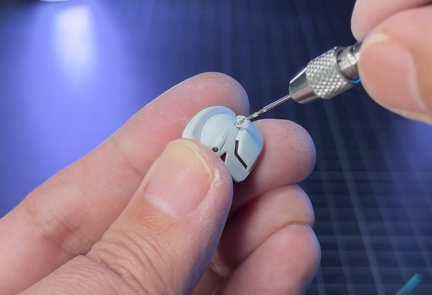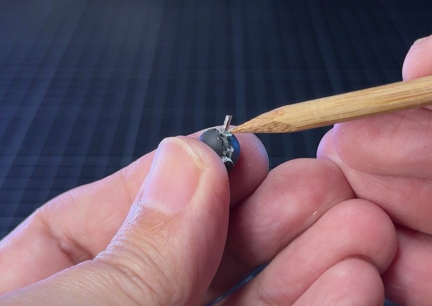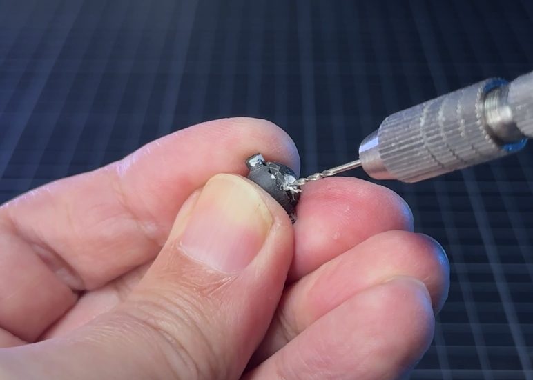 ピンバイスで穴をあけ、