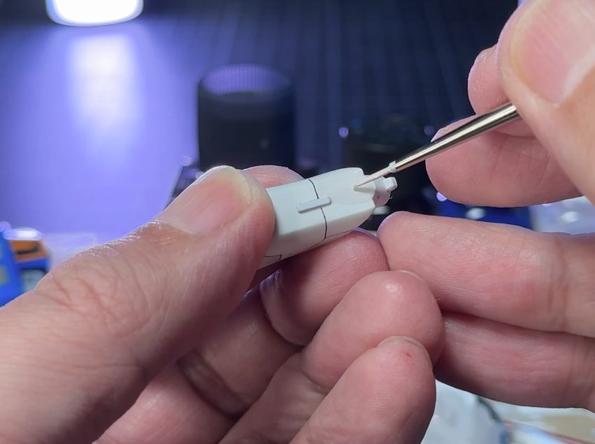 ちなみに、パネルライン追加のスジボリは、いつも足や胴体のみで腕をやる頃には力尽きているのですが、今回もまんまとそうなりました。なので、腕まわりは、アッサリしてます。