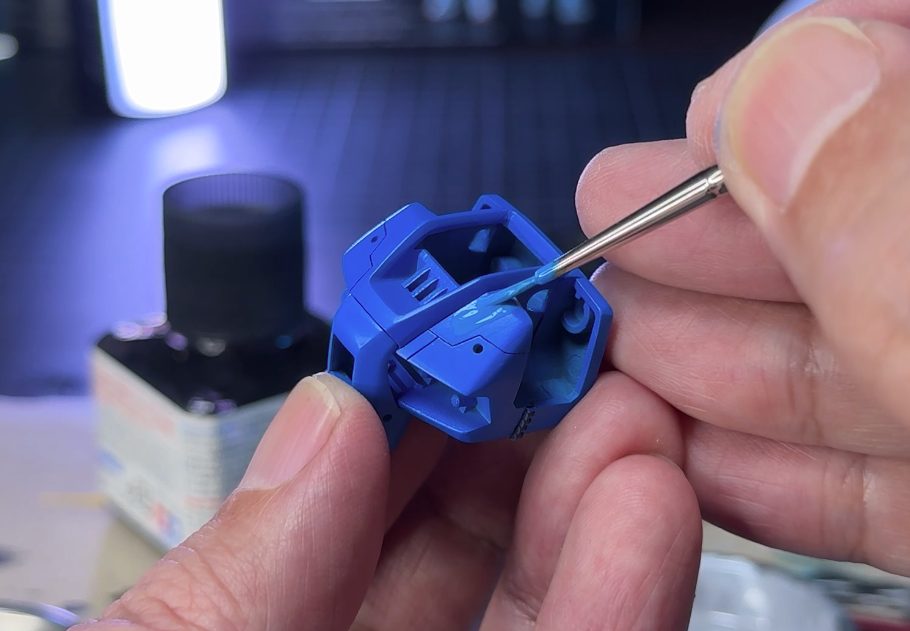 明るいブルーは、タミヤカラー エナメル塗料ブルー(X-4)とホワイト(X-2)を調色。