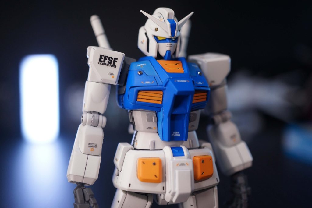 胸まわりと股間部をスクラッチし、武装やアンテナなど従来のパーツに戻してやると、一気にRX-78-2ガンダムに近づきました。
