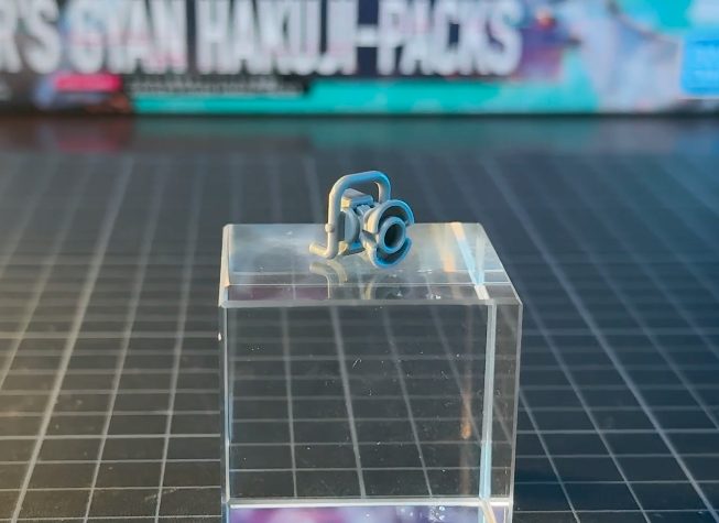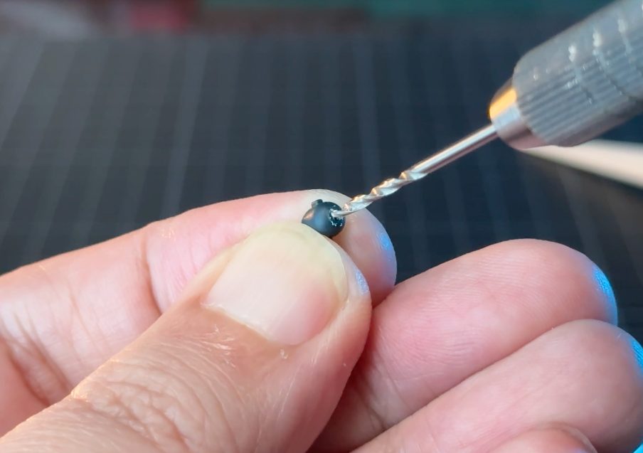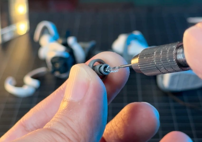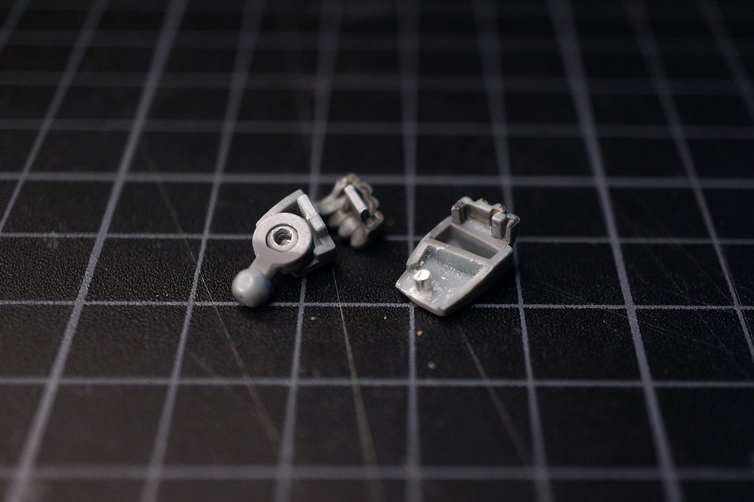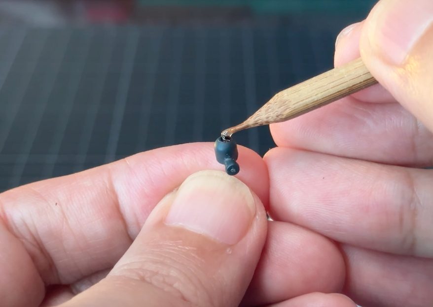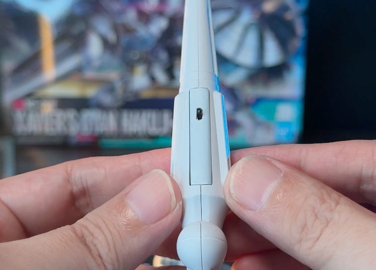 バックパックは後で接着する予定なので、塗装後にチップLEDをスムーズに通せるよう、中を削ります。