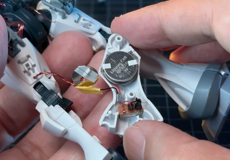 こちらはモナカ構造(予算の都合らしいですが)なので、電池とスイッチを収納するのはそれほど難しくはありませんね。