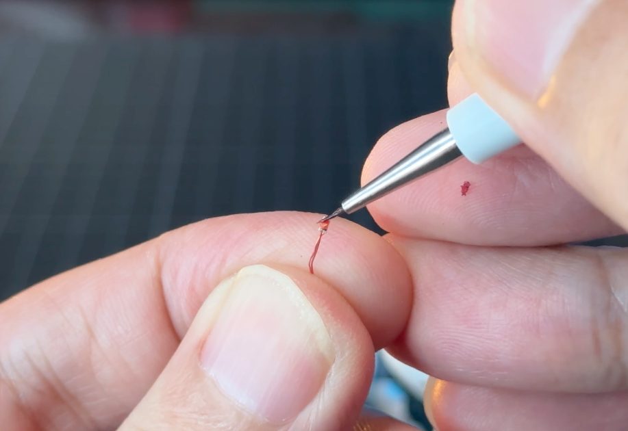 チップLEDは、タミヤカラー エナメル塗料クリヤーレッド(X-27)を塗装。いつものように使用するチップLEDは、「チップLED0603(1608) 0.16mm配線済み」。