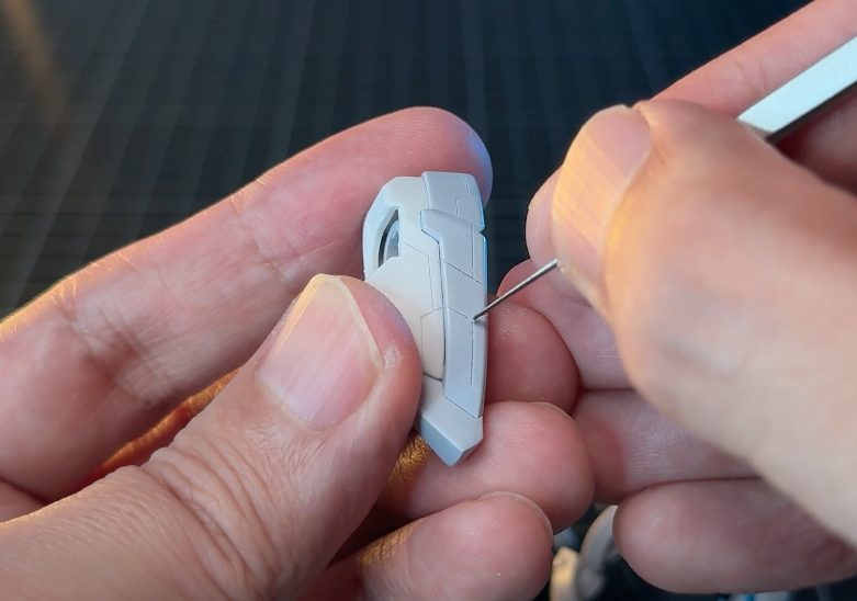 パネルラインの掘り直しと、スジ彫りによるパネルラインの追加をしていきます。今回もデザインに悪戦苦闘・・・。めっちゃ時間かかりました。