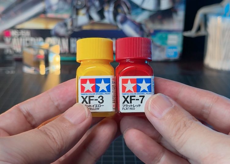 オレンジ部はタミヤカラー エナメル塗料 フラットイエロー(XF-3)、フラットレッド(XF-7)を調色。