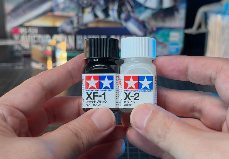 筆塗りグレー部はタミヤカラー エナメル塗料フラットブラック(XF-1)とホワイト(X-2)を調色。