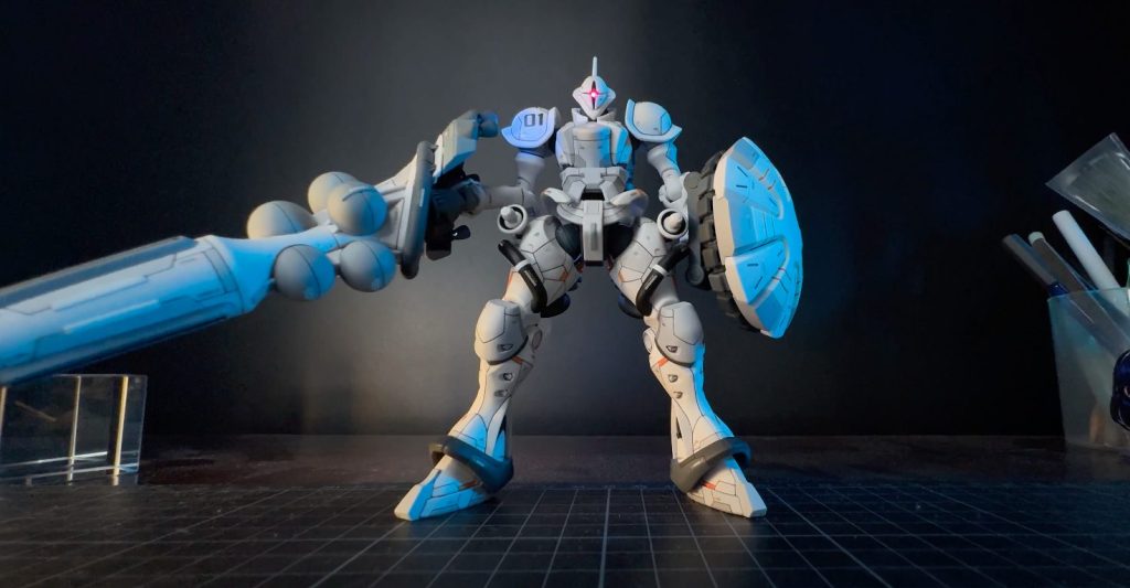 ジークアクス作品中、最高にかっこいいエグザベ専用ギャンですが、このキットもかなりよくできていて、かっこよすぎなのです。しかし全体的にパネルラインが少なく感じたので、今回は少し多めにパネルラインの追加と塗り分け塗装をしてみました。